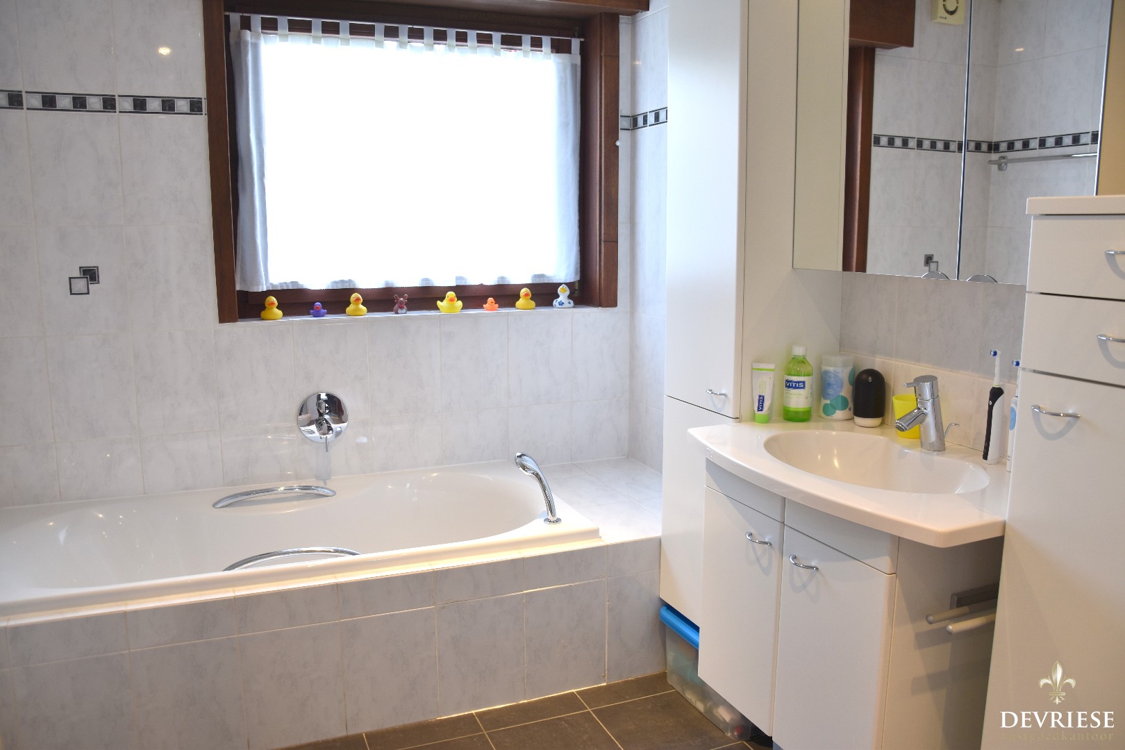 Verder op het gelijkvloers een apart bureel maar ook een zeer ruime dubbele garage (met brede en diepe oprit) en aparte wasruimte.