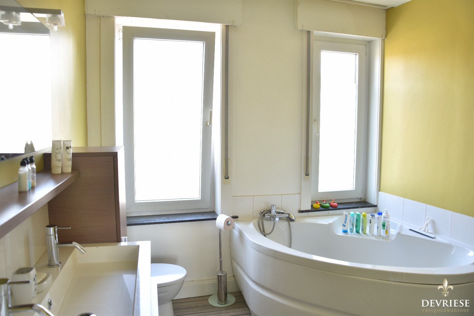 Op de eerste verdieping zijn er 2 volwaardige slaapkamers en de vernieuwde badkamer die voorziet in een tweede toilet, bad en douche. Er is bovendien een vaste trap naar de tweede verdieping die recent werd ingericht als 3e slaapkamer. Dankzij de grote velux in het dakraam, geniet je van vol zicht op de Leie. Daarnaast is er nog een extra bergruimte.