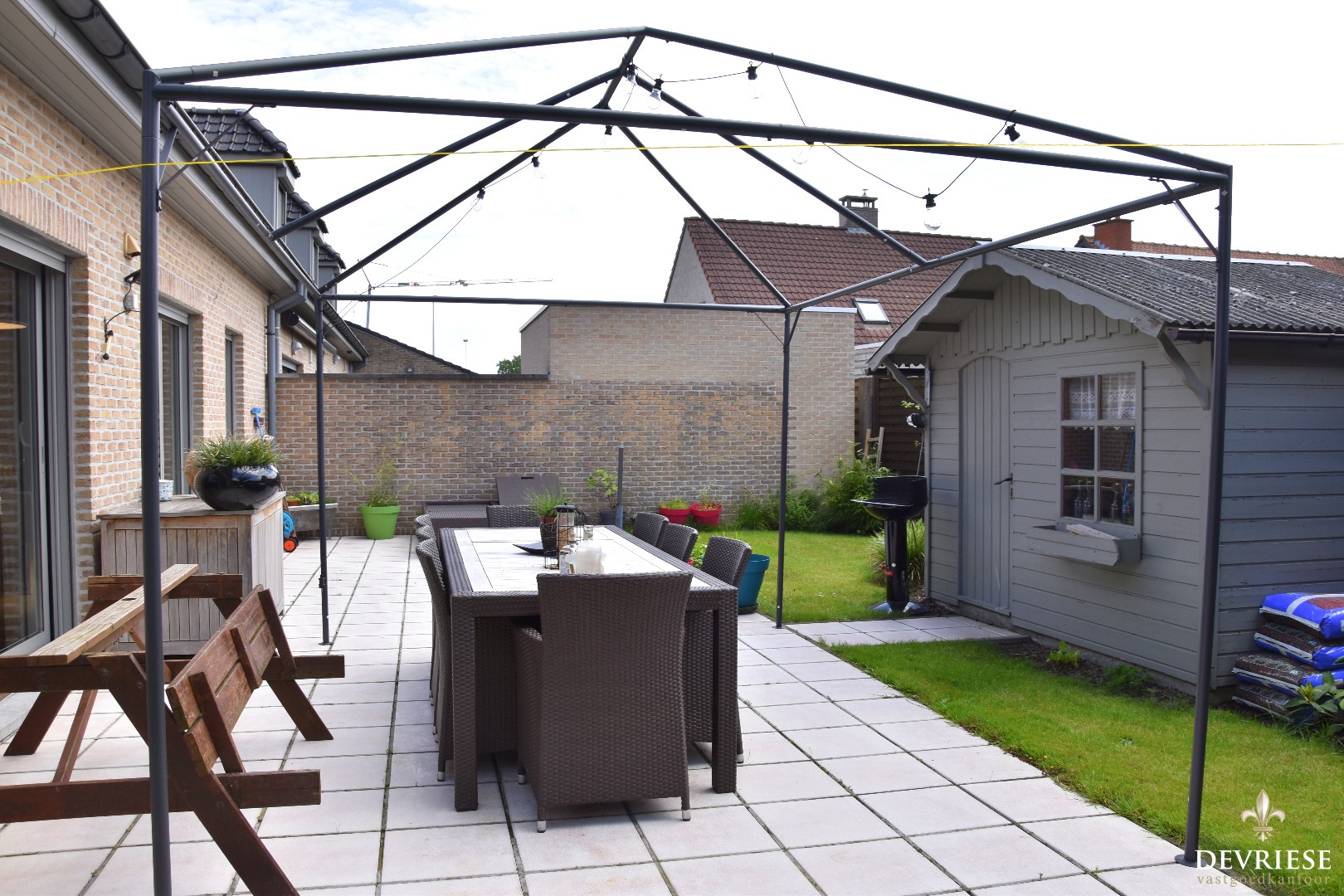 Bovendien is de tuin bereikbaar via de poort aan de zijkant van het huis en via de garage die doorloopt over de volledige diepte van de woning. Eigen oprit inbegrepen.