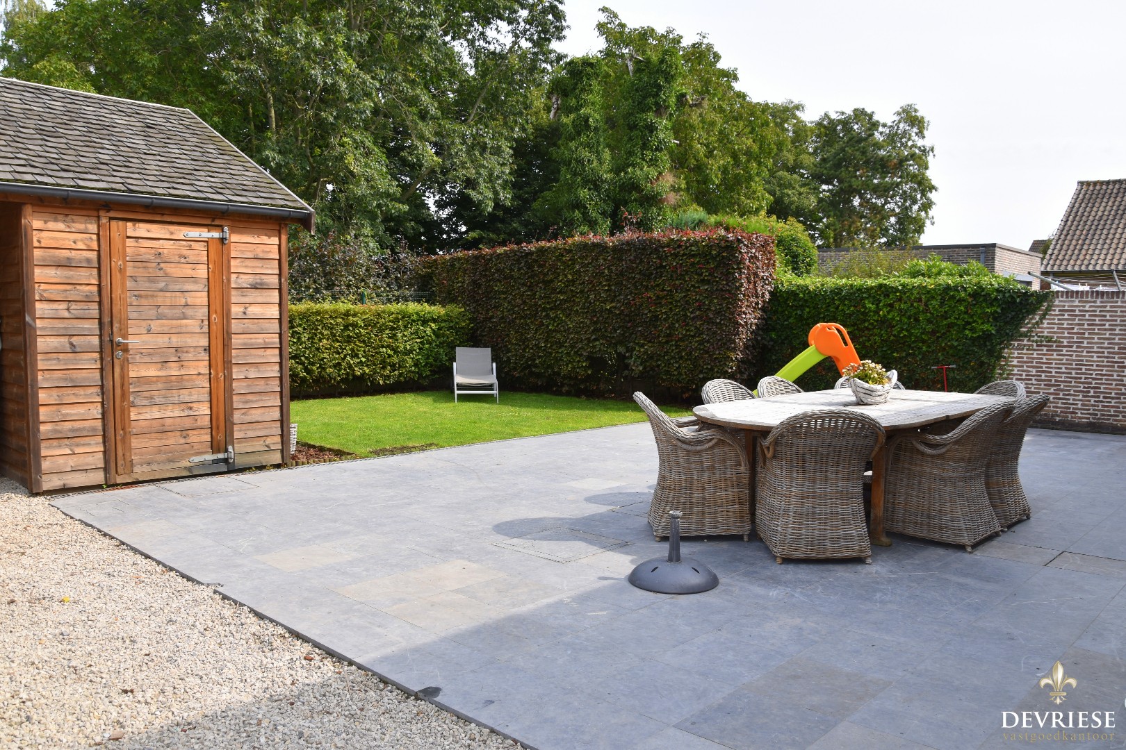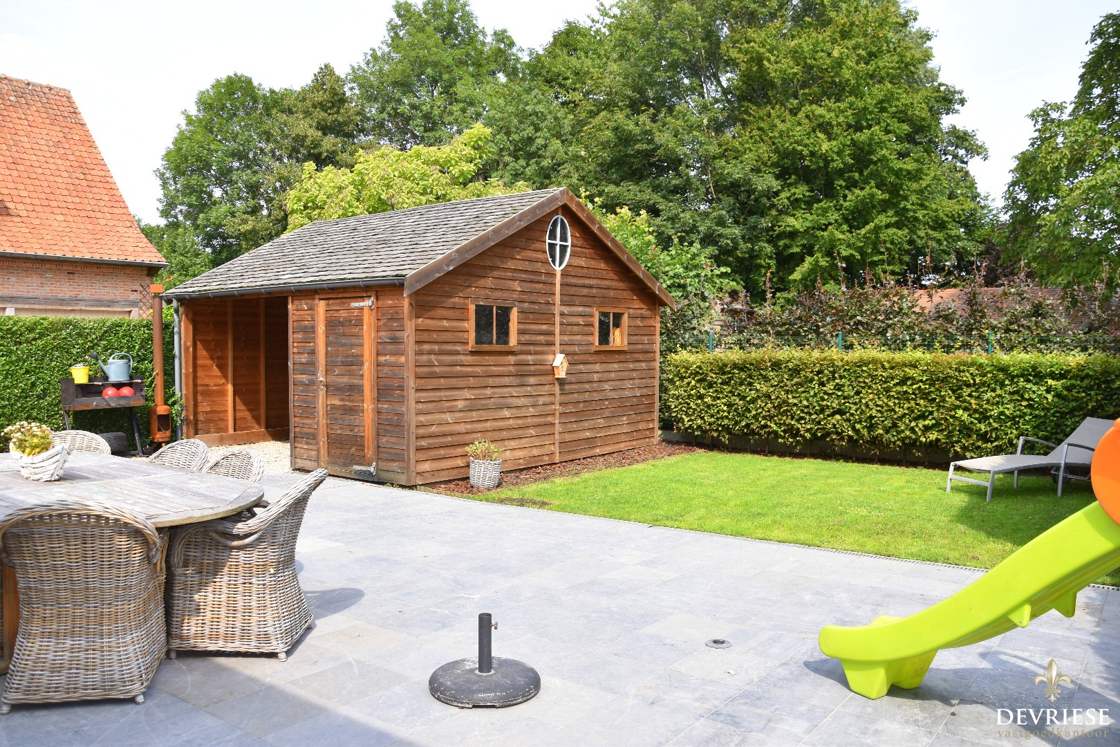 Aan de zijkant van de woning is er een oprit voorzien met achteraan een recente carport en een tuinberging.