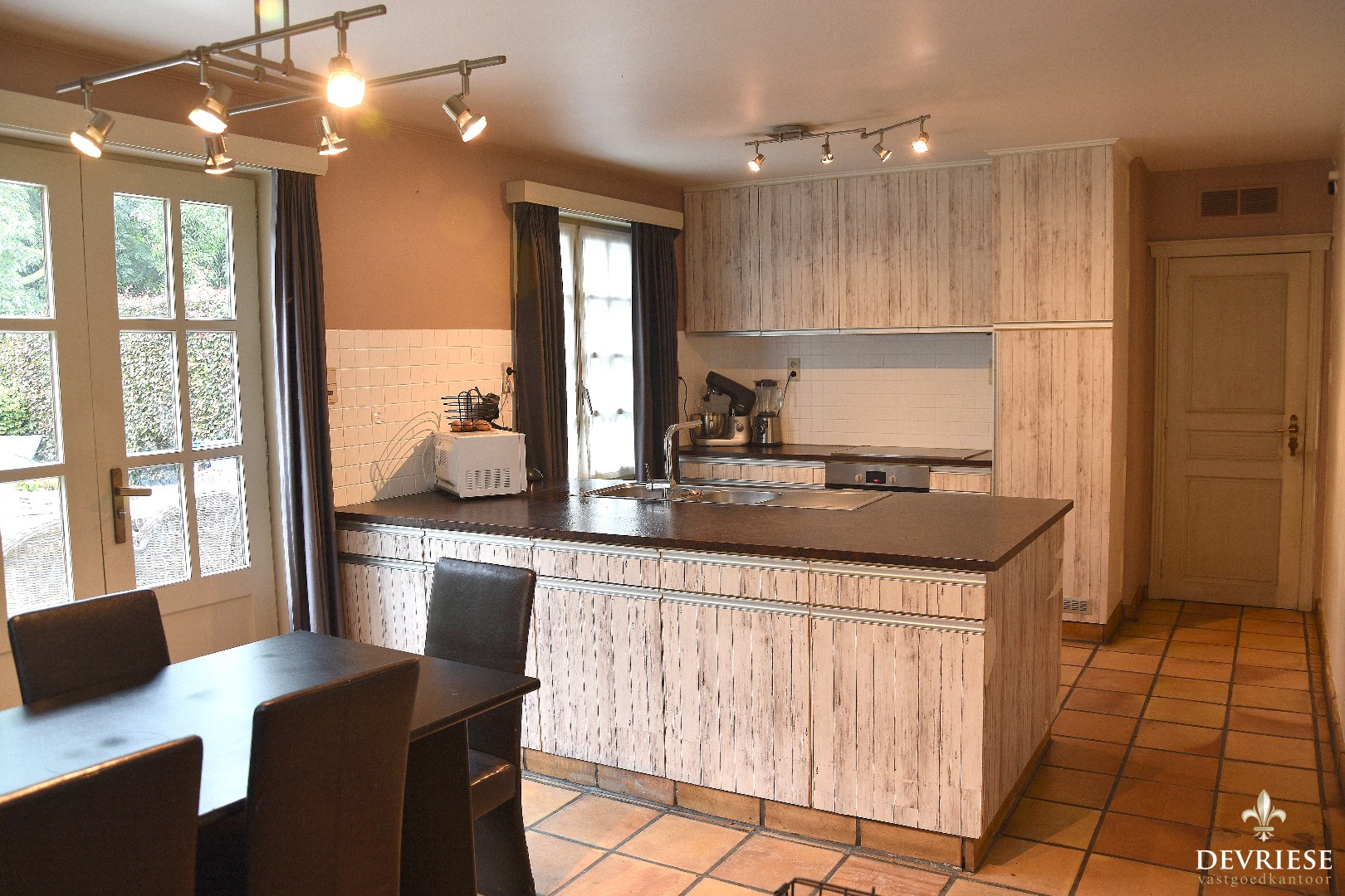 Bij het binnenkomen in de woning is er een grote hal met apart gastentoilet en van daaruit kom je in de ruime leefruimte, voorzien van pelletkachel. Aansluitend is er de leefkeuken met een vol zicht op de tuin. Naast de keuken is er de zeer handige berg/wasruimte met toegang tot de tuin en ook de badkamer met bad en douche bevinden zich op het gelijkvloers.