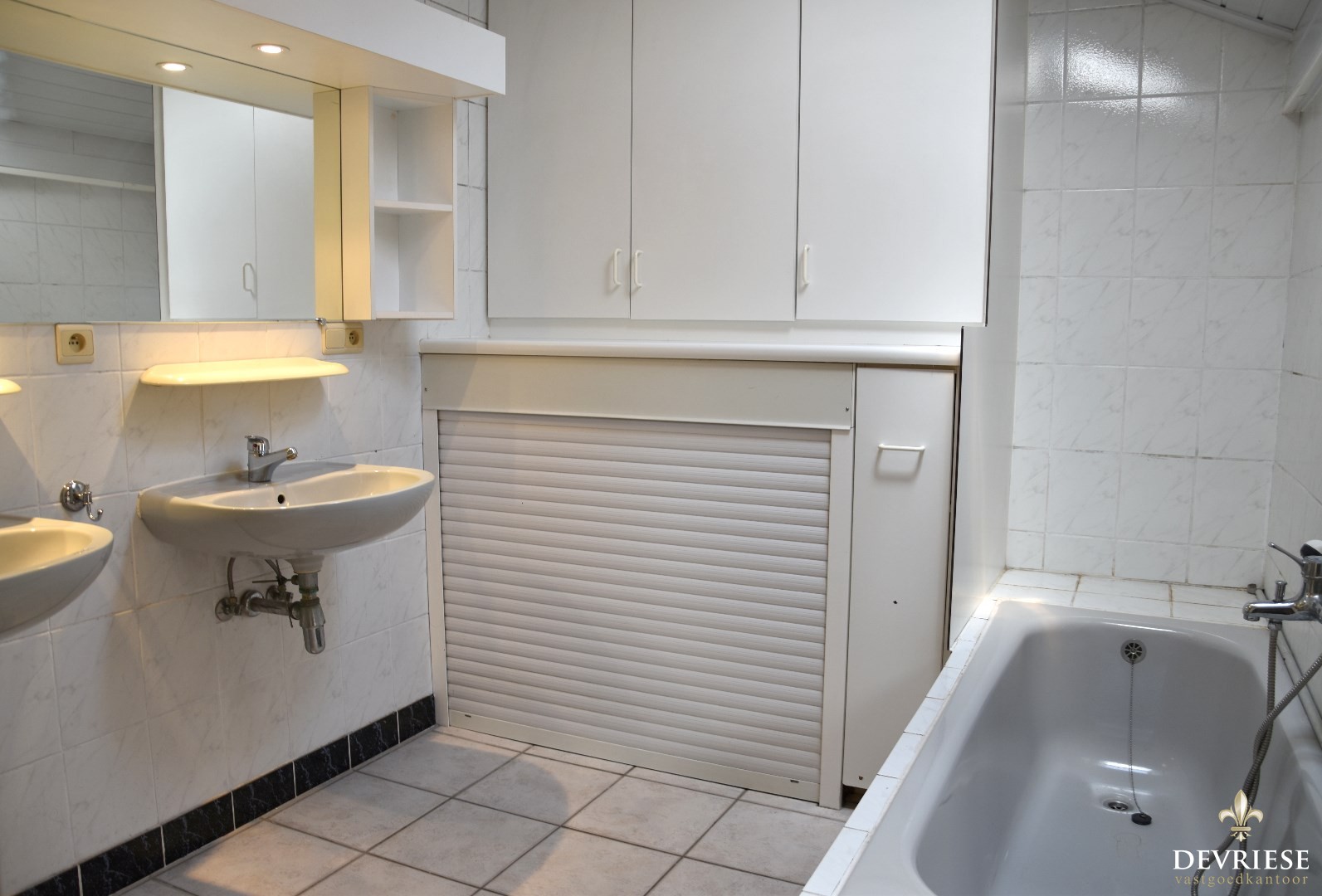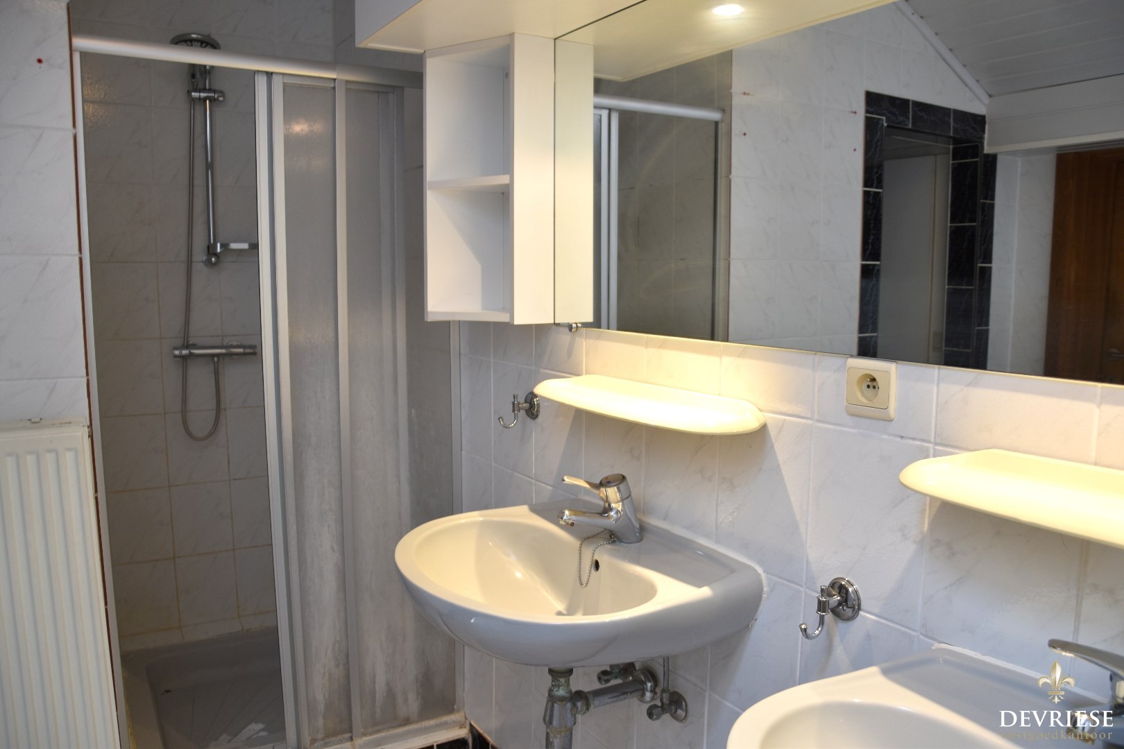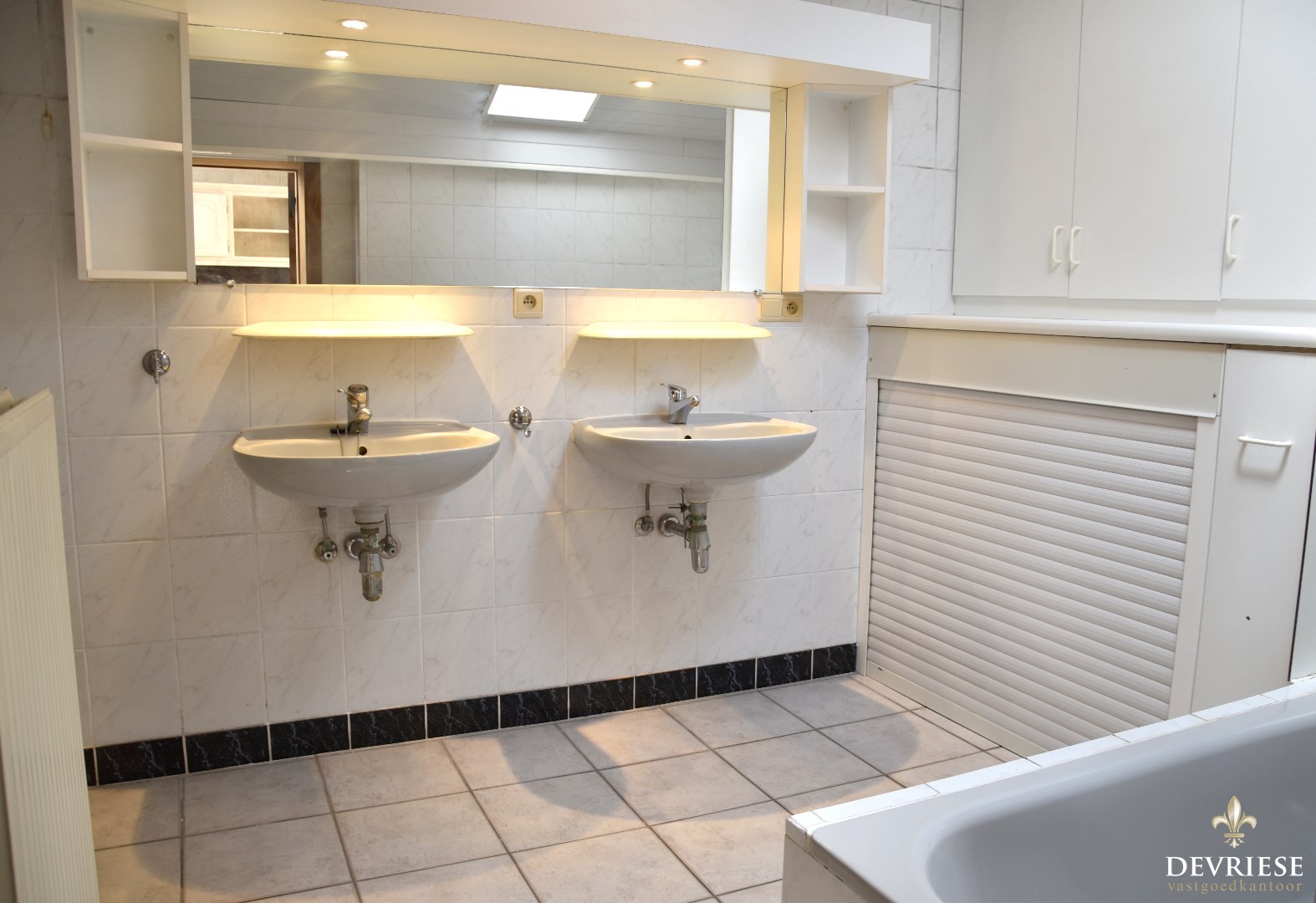 Badkamer met zowel ligbad, douchecabine, dubbele lavabo en toilet. Alsook een geïntegreerde wasplaats. Aparte berging en droge kelder voorhanden.