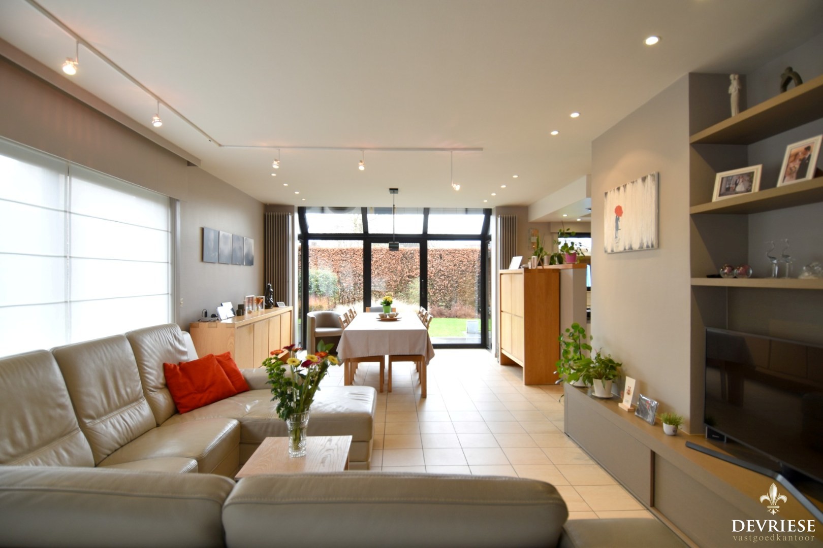 Via de inkomhal met gastentoilet komt u in de lichtrijke en open leefruimte waar het aangenaam vertoeven is. De open indeling zorgt voor een ruimtelijk gevoel en een mooie connectie met de tuin.