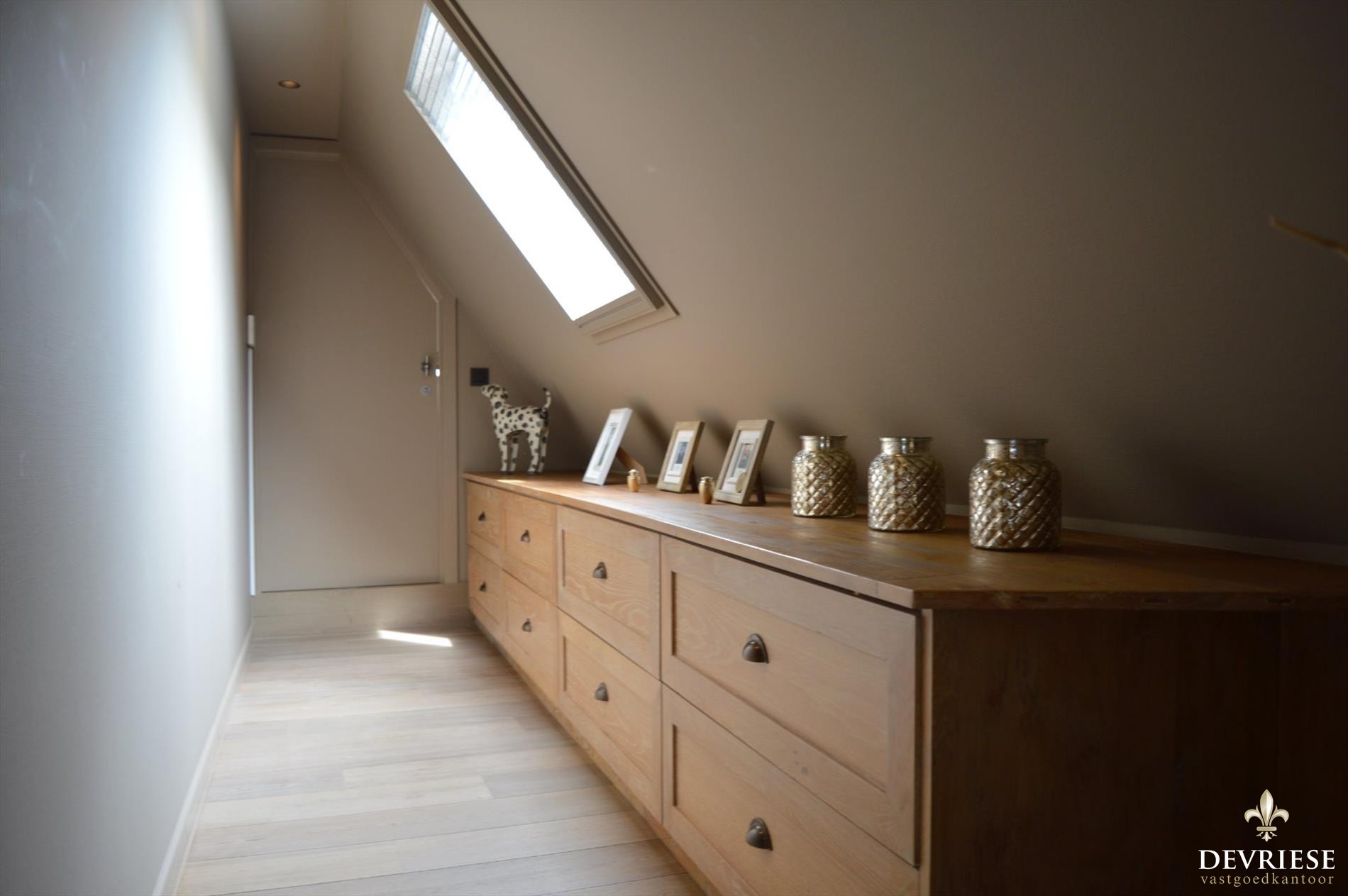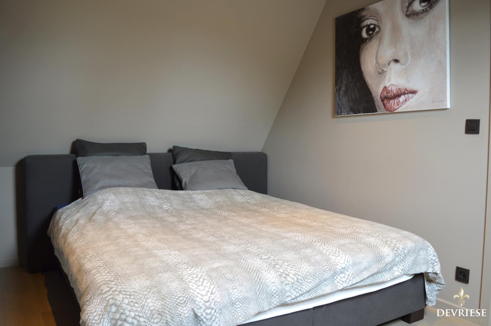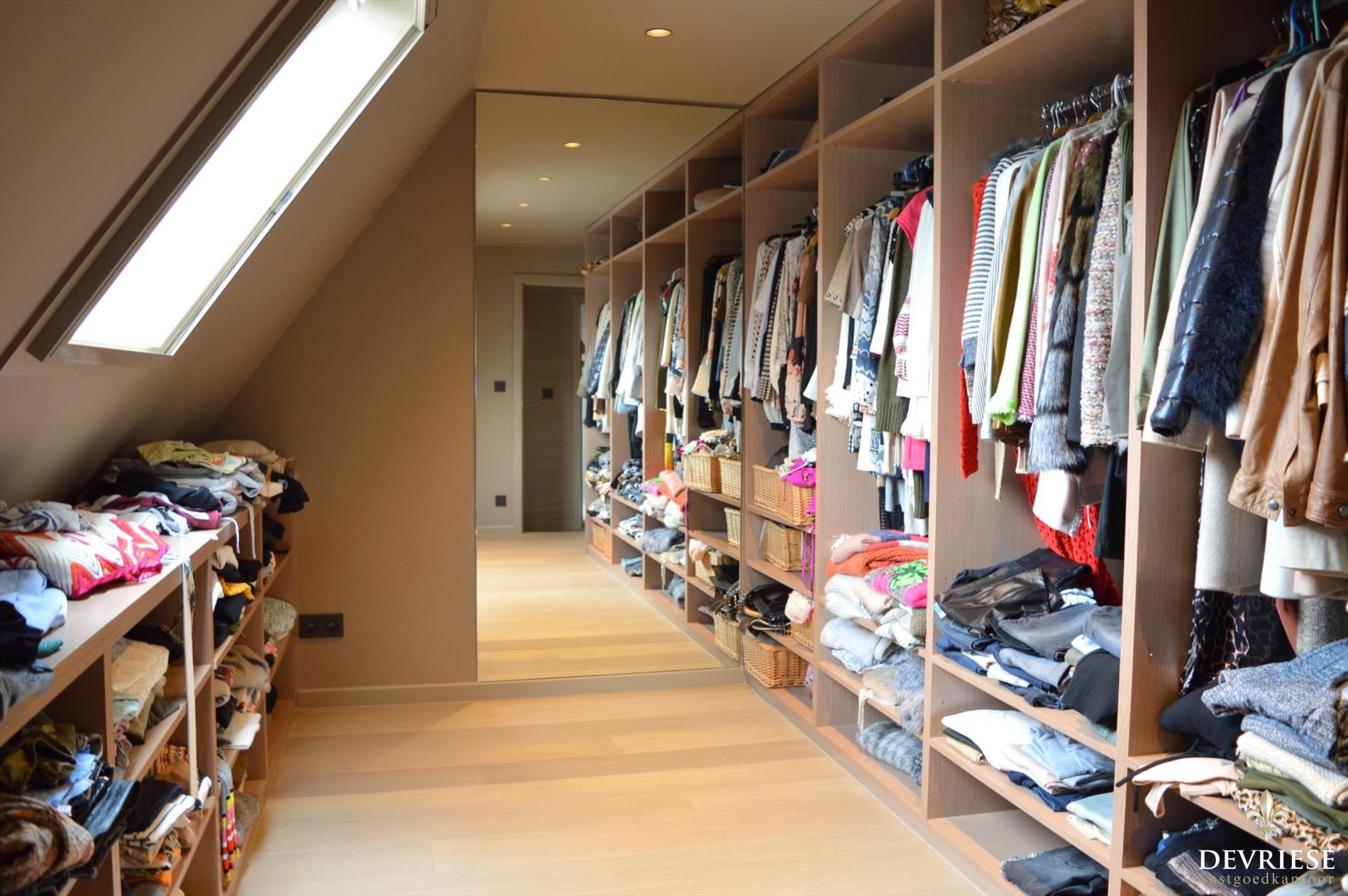 Grote inloopdouche, dubbele wastafel en een moderne afwerking. Op de eerste verdieping zijn er 2 volwaardige slaapkamers en een derde kamer die op vandaag werd ingericht als dressingruimte. Deze kan vanzelfsprekend opnieuw omgevormd worden tot derde slaapkamer.